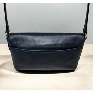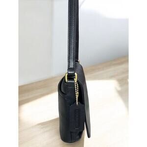 This Vintage Coach 9599 Leather Legacy Demi Flap Bag from 2003 is a classic Coach style and silhouette. Featuring black glove tanned leather with brass hardware, this small bag is both stylish and functional with an adjustable strap for shoulder or crossbody wear. The perfect little black bag if you love and appreciate classic, vintage Coach design and quality!