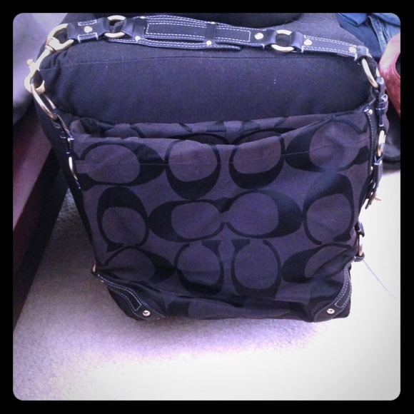 Vintage coach bag, had been used. It's an all black hobo coach bag w gold accents.