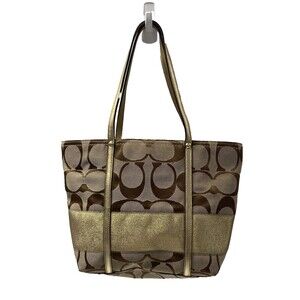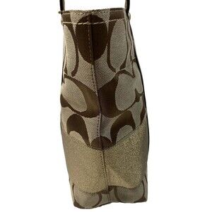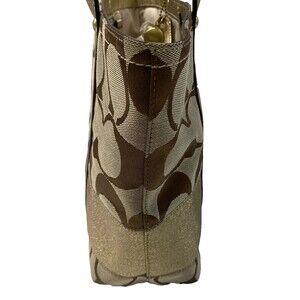 Vintage Coach Bag Brown Leather Gold Sparkle Stripe with Dust Bag Shoulder Purse