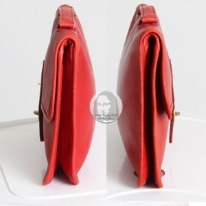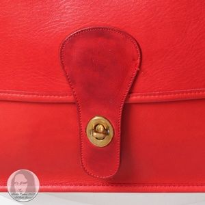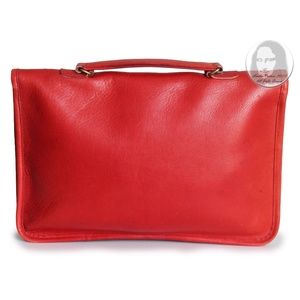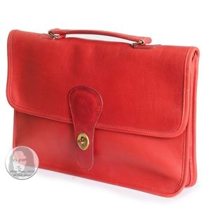 Authentic, preowned, vintage Coach bag handle clutch portfolio w/turnlock, circa the 70s (Bonnie Cashin era!). A Rare bag in a hard to find color! It's similar to the more modern Coach School bag. Made from red leather, it features a top handle with turn lock closure, and is unlined with 2 slip pockets & 1 zipper pocket under flap.