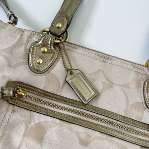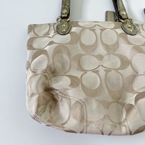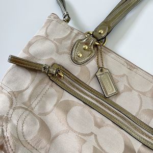Vintage Coach Bag Poppy Signature C Monogram Logo Glam Tote 23261 Gold Champagne Tan Handbag Shoulder Bag