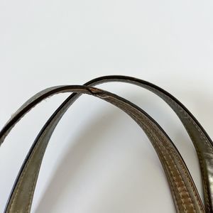 Has some distressing at the corners, the finish on the leather is chipped/peeling in places, and the trim around the handle is peeling some. See photos for details. Overall good vintage condition. Also I believe this bag may have originally come with more hangtags, but there is only one included with this (the one shown).