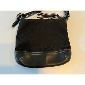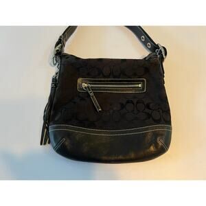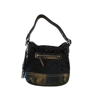 Vintage Coach Black Brown Signature Jacquard Leather Shoulder Handbag
