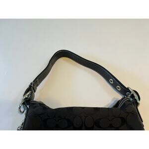 Vintage Coach Black Brown Signature Jacquard Leather Shoulder Mini Handbag