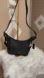 Sleek black crossbody bag. Features adjustable strap. Classic Coach design.