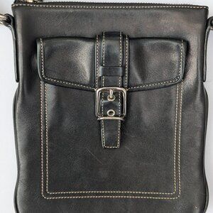 Vintage Coach Black Leather Crossbody Bag with Buckle Front Pocket
