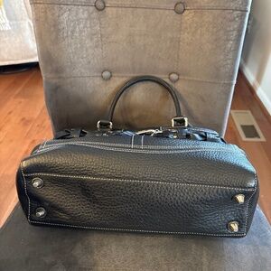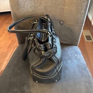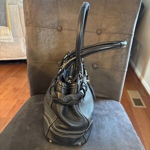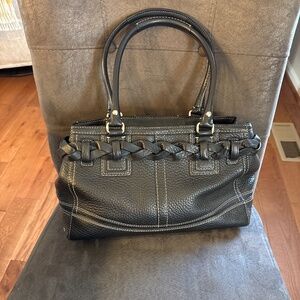 Vintage Coach Black Leather Hampton Braided Accent Satchel Handbag