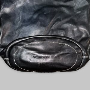 Vintage Coach Black Leather Hobo Shoulder Bag with Brass Hardware