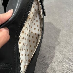 Interior flap shows a stain and back pocket lining shows a minor stain