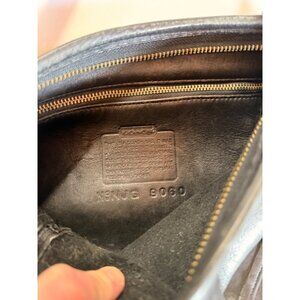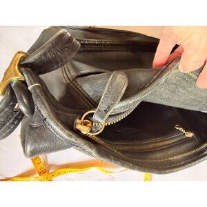 Vintage Coach Black Leather Shoulder Bag Purse With Adjustable Strap & Gold Buck