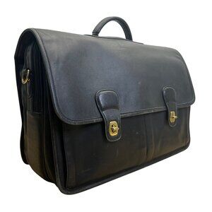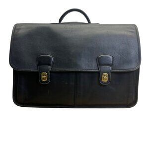 Vintage Coach Black Leather With Dual Buckle Closures & Top Handle Messenger Bag
