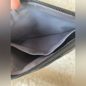 Sleek black vintage leather wristlet by Coach. Perfect for essentials. Stylish and compact.