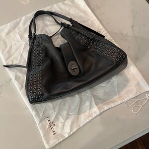 Vintage Coach Black Madison Grommet Large Carlyle Leather Handbag Style 32404