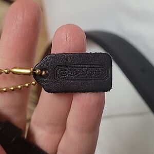 Vintage leather black Coach belt with brass hardware new with tags never used buy hardware shows some wear from storage, size Large measures 38 inches in lenght smallest hole 31 1/2