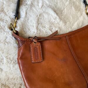 Vintage Coach Bleecker Leather Shoulder Bag Tattersall Lining Brown Burnished Leather