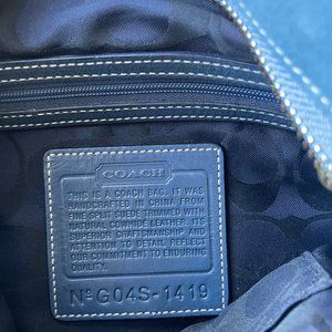 The bag is adorned with the distinctive Coach logo and comes with the model number #G04S-1419, adding to its authenticity and collectible value. The zip-top closure keeps your essentials secure, making it an ideal companion for your everyday adventures.