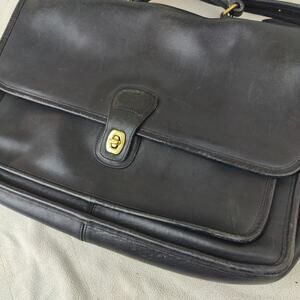 Vintage Coach Briefcase Black Leather Swivel Lock Shoulder Strap Laptop Bag