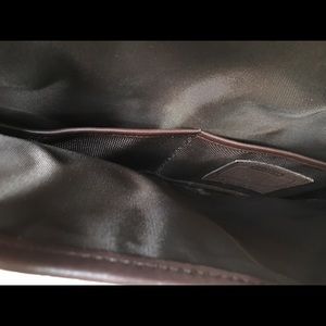 🌷💕Holiday Sale! Final price! Vintage. 🥀Coach Brown Briefcase NEVER USED! Closet kept. Beautiful bag with 3 large compartment areas. Bag measures 14 x 12 with a 42 inch detachable and adjustable shoulder straps. Bag has a handle if shoulder strap is not used. There are a few scratches on the bag and a couple of small indention marks. I tried to capture it in picture. Barely noticeable. Great buy here mint condition.
