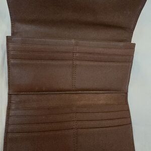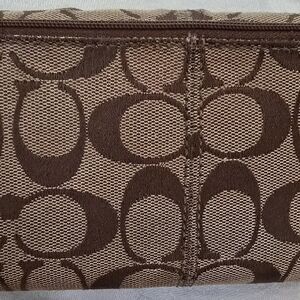 Vintage Coach Brown Leather Canvas Trifold Wallet with Snap Closure