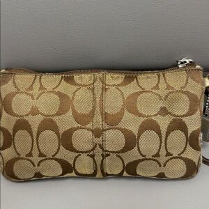 Vintage Coach Brown Signature Clutch Double Pocket Wristlet