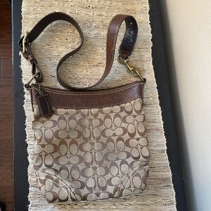 Vintage Coach bag. 1990’s to 2000’s signature logo bag. Features thick brown leather accents.