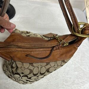 Vintage Coach Bucket Bag Brown Signature Shoulder/ Crossbody with Leather Trim