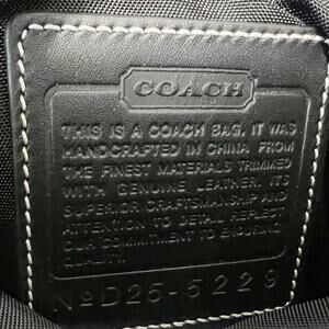 Vintage Coach Canvas Signature Logo Crossbody Messenger Bag #D25-5229 Black. Canvas material with monogram signature logo design. Leather trims. Front flap with buckle closure. Multiple zip compartments and pockets for organization. Fabric lined interior. Adjustable crossbody strap with 14.5" strap drop. Handcrafted in China. Style# #D25-5229