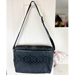Vintage Coach Canvas Signature Logo Crossbody Messenger Bag #D25-5229 Black