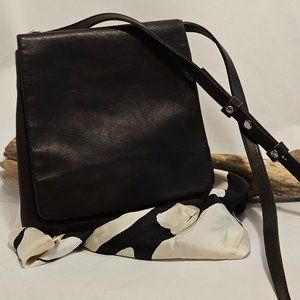 This supple cross body bag is a rich chestnut brown that is almost black. It has nickel hardware and an adjustable strap, as well as a flap with a magnetic closure. This purse actually comes with a certificate of authenticity. If you wish to have the certificate transferred to your name, that would be extra. Please contact seller for that information. Condition is very good, bag has of course been cleaned and treated with conditioner to clean and restore the Chelsea to it's original Glory. No closet is complete with out a great and versatile crossbody bag. Treat yourself today!