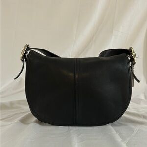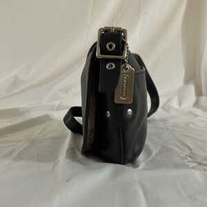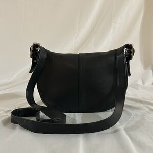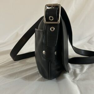 Vintage Coach Classic Black Leather Flap Crossbody/Shoulder Bag - 7453