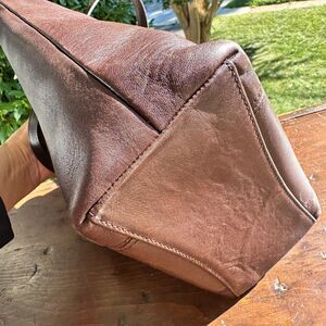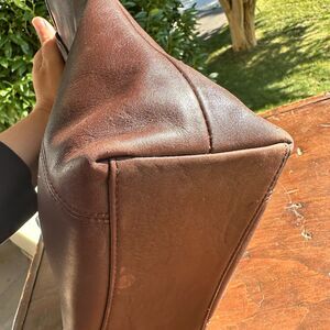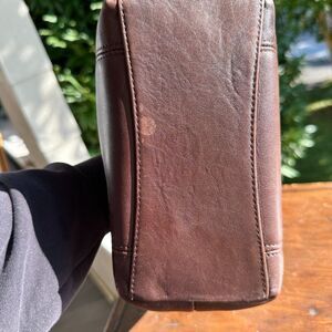 Leather is soft and supple with nice sheen. Original hang tag included. Small discoloration on the bottom (see photos). Interior is clean with light signs of use. Overall great vintage condition with beautiful patina.