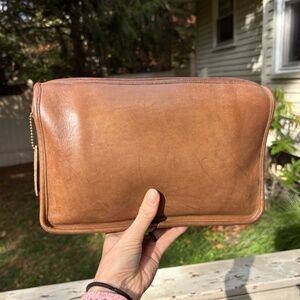 Beautiful patina! Several small spots and marks, though none super noticeable. Slight cracking on one side of the strap- see photos.