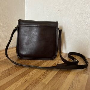 Vintage Coach Companion Flap Mahogany Leather Crossbody Adj. Strap Handbag 9076