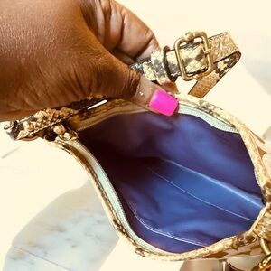 • Material: Signature jacquard fabric with faux snakeskin trim and strap