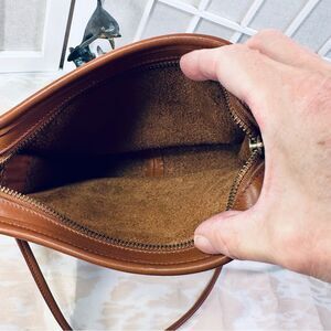 Minimalist bohemian vintage Coach purse features a removable cross body strap, large slip pocket in the front, maple walnut leather (goes with everything!) and an unlined suede interior.