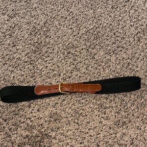 Elegant women's belt by Coach. Features a black strap with a brown leather accent. Ideal for versatile styling.