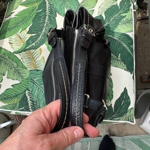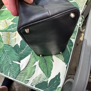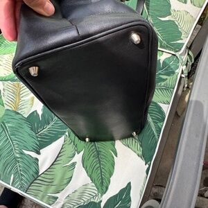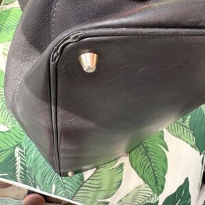 Black leather. Used condition. Large bag. Wear on bottom corners, please see pics.