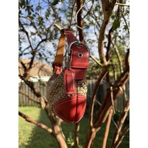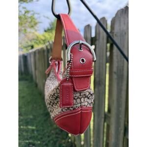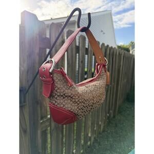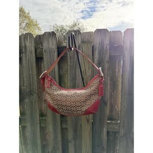 Vintage Coach Hobo Red Mini Jacquard Leather Near Mint 6351