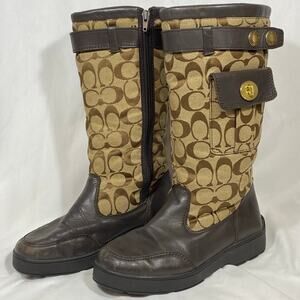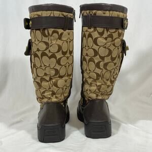 Vintage Coach KAYLA Rain Winter Boots Size 7 Logo Leather Canvas Pocket A7225