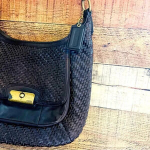 Vintage Coach Kristin Woven Brown Leather Hobo Bag