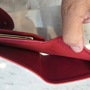Vintage Coach NWT compact wallet, smooth red leather. Kiss lock coin compartment, 2 slots for cards, bill fold.