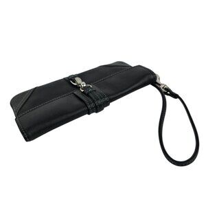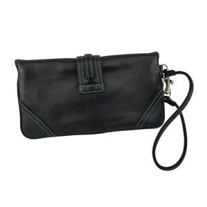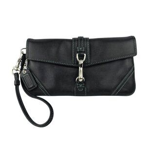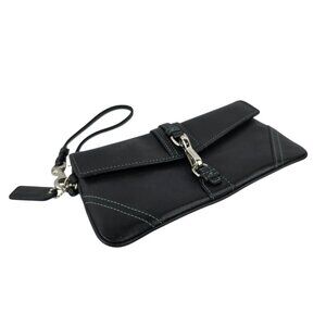 Vintage Coach Leather Signature Black Clutch Wristlet Bag 7.5" x 4"
