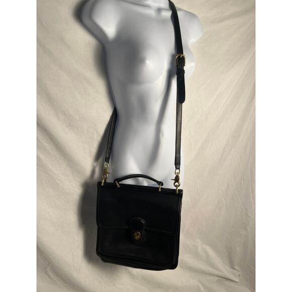 Vintage Coach Leather Willis Bag Black Top Handle Crossbody Brass Hardware USA