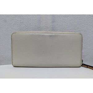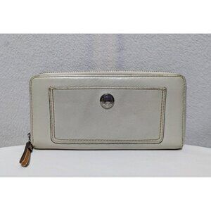 Vintage Coach Leather Zip Around Accordion Wallet Cream/Off White Silver