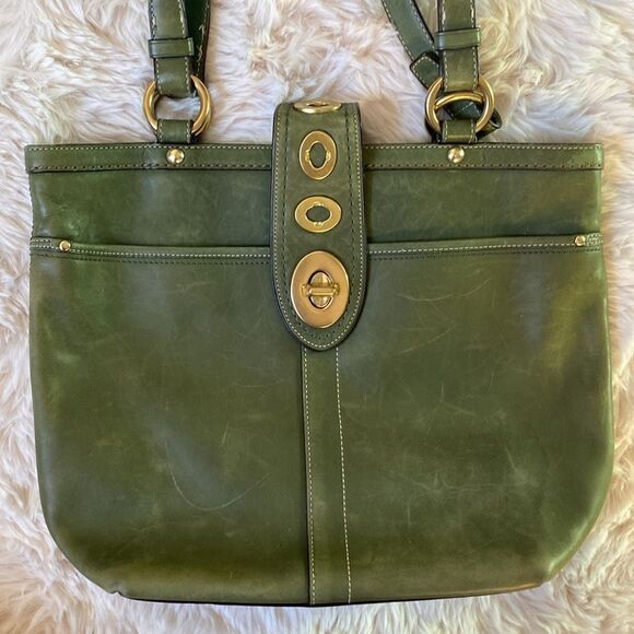 Vintage Coach Lily Legacy Turnlock Green Leather Tote Handbag