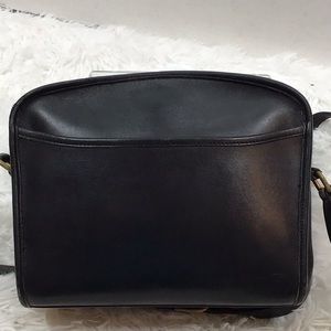 Smooth black leather, gold hardware, some tarnish, long adjustable strap, vintage 1998, see pic for more details, leather inside with one zip pocket, includes snap in Coach key ring, Coach, Metropolis style, vintage, medium size 9”x8”x3”, style 9087, good condition, includes that cute bag twilly (scarf) (B-5)