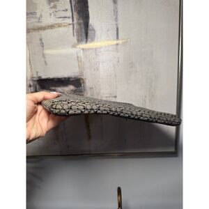 Classic Coach canvas with the iconic “C” monogram print all over in black + beige tones. Trimmed with black patent leather at the zipper for a sleek finish. Perfect size for carrying essentials – use as a clutch, makeup bag, or organizer inside a tote.