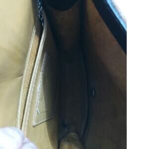 @lowery_kimberly GM all the problem areas on this vintage Beauty are pictured the corners have like a patina wearing you see in the pics just like a little bit Brown on a few corners, look at the photo that's open Flap just from the bending it's not cracking it just has patina, then there is a photo inside down in the corner a discoloration there's no major damage of any kind, none of the patina wearing spots are like a colored stain or bright they're just the typical leather darkening wear.