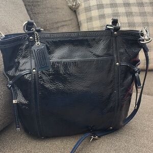 Vintage Coach Navy Blue Audrey Patent Convertible Shoulder Bag