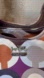 Vintage Coach sateen handbag, features OP Art design style, with brown leather details and handles. Purple satin lining, opens up to reveal 3 compartments. Lining appears to be in excellent condition, no flaws noted. Large storage areas, 2 built in pouches to hold important items like cell phone, and zippered compartment inside. Please see photos of the bottom, very small amount of scuffing noted, it’s otherwise in excellent condition.